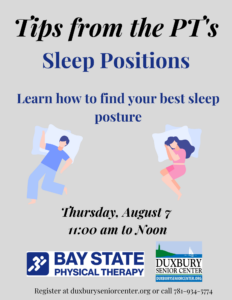 Tips From The PT’s: Sleep Positions at Duxbury Senior Center